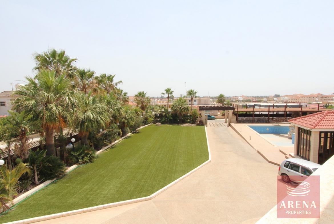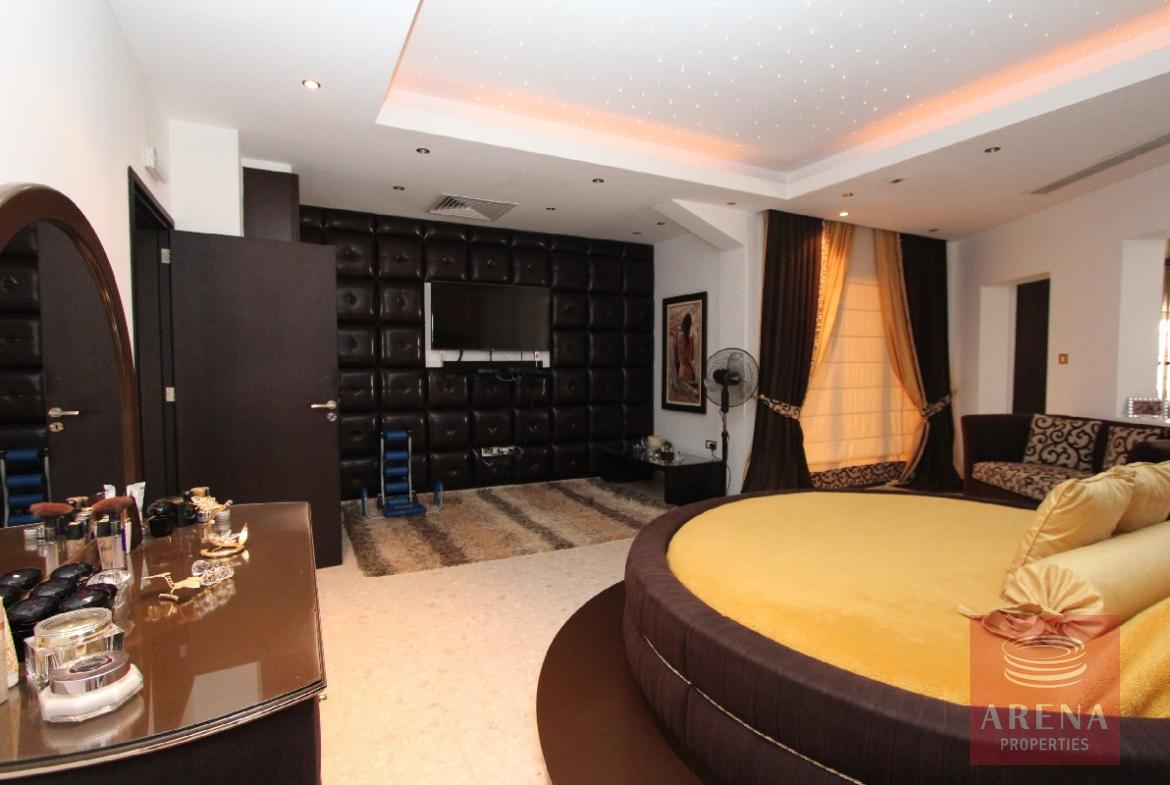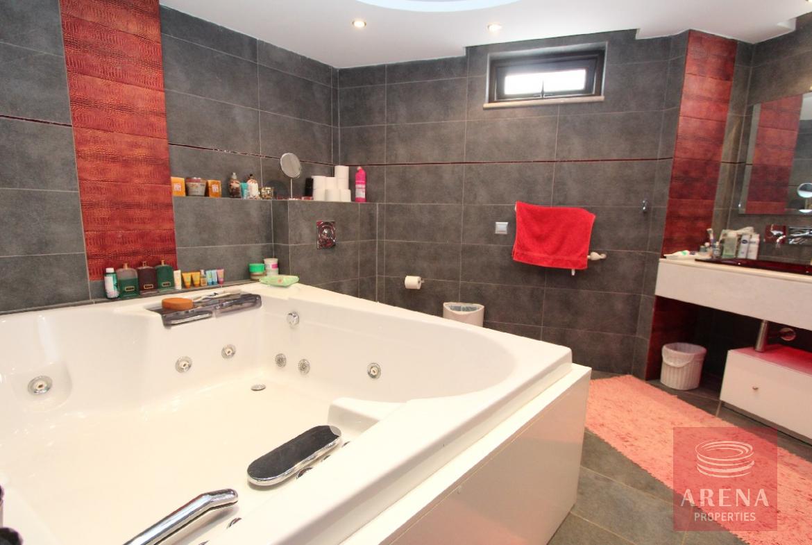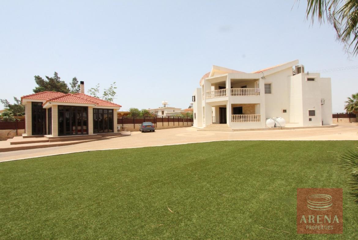 Spectacular, one of a kind, 4 bedroom villa with 2 separate guest buildings, double garage and splendid 22x17m swimming pool. Where do we begin? This magnificent home has been finished with no expense spared from the huge swimming pool terrace and manicured gardens to the dropped ceilings with spotlights throughout. The electric gates with security entry open onto the long drive leading to the main house. The double doors open into the vast reception room with a sweeping staircase leading to the first floor. Each area has been tastefully decorated with luxury in mind. The ground floor boasts 3 separate lounge seating areas, a dining area, immaculate state of the art kitchen and private `man-cave` which would make a great office or kid`s den. For convenience, there is even another kitchen on the first floor, perfect for making a drink to take to one of the large first floor balconies. The master bedroom is of vast proportions with a huge bathroom with Jacuzzi bath, separate shower/wet room, sauna and walk-in closet. The balcony accessed from this bedroom is big enough to close in and convert to another bedroom if desired. The 3 remaining bedrooms on the first floor each have en suite shower and WC, all finished with the highest quality ceramics and bathroom fittings. To the rear of the property is a double garage and separate guest/maid quarters. Here there is a large kitchen, store cupboard, living area, double bedroom and shower. The L shaped swimming pool at the front has a bridge and stone fountain feature and a second outbuilding/summer house complete with yet another kitchen and fireplace. The swimming pool terrace is the perfect place for entertaining, there is a vast shaded area complete with large built-in bbq and outdoor kitchen area.