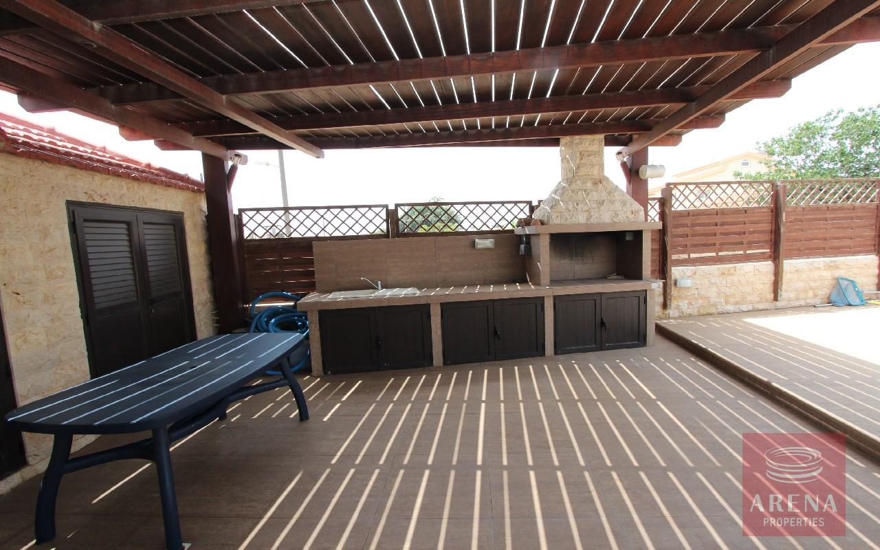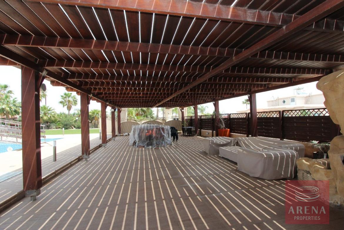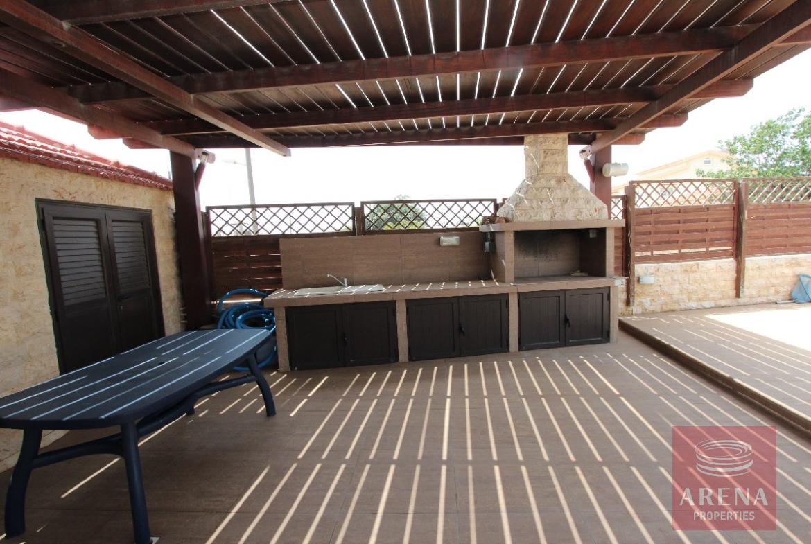 Spectacular, one of a kind, 4 bedroom villa with 2 separate guest buildings, double garage and splendid 22x17m swimming pool. Where do we begin? This magnificent home has been finished with no expense spared from the huge swimming pool terrace and manicured gardens to the dropped ceilings with spotlights throughout. The electric gates with security entry open onto the long drive leading to the main house. The double doors open into the vast reception room with a sweeping staircase leading to the first floor. Each area has been tastefully decorated with luxury in mind. The ground floor boasts 3 separate lounge seating areas, a dining area, immaculate state of the art kitchen and private `man-cave` which would make a great office or kid`s den. For convenience, there is even another kitchen on the first floor, perfect for making a drink to take to one of the large first floor balconies. The master bedroom is of vast proportions with a huge bathroom with Jacuzzi bath, separate shower/wet room, sauna and walk-in closet. The balcony accessed from this bedroom is big enough to close in and convert to another bedroom if desired. The 3 remaining bedrooms on the first floor each have en suite shower and WC, all finished with the highest quality ceramics and bathroom fittings. To the rear of the property is a double garage and separate guest/maid quarters. Here there is a large kitchen, store cupboard, living area, double bedroom and shower. The L shaped swimming pool at the front has a bridge and stone fountain feature and a second outbuilding/summer house complete with yet another kitchen and fireplace. The swimming pool terrace is the perfect place for entertaining, there is a vast shaded area complete with large built-in bbq and outdoor kitchen area.