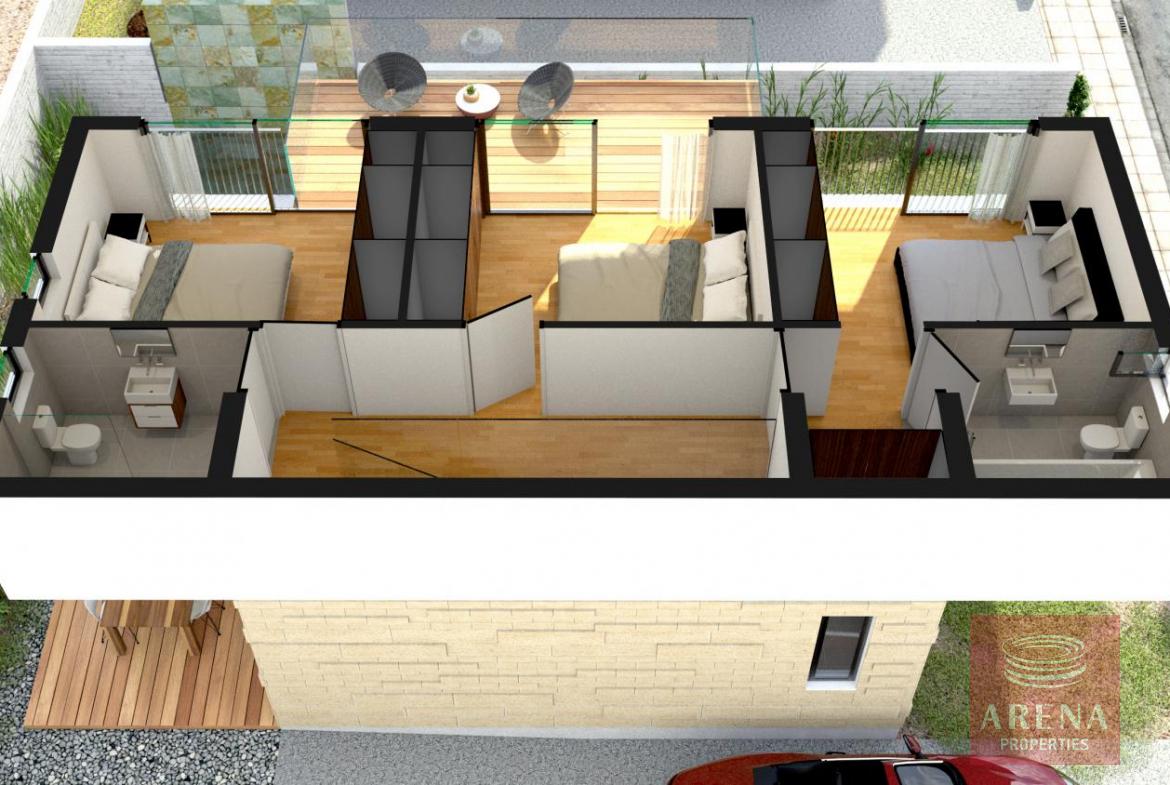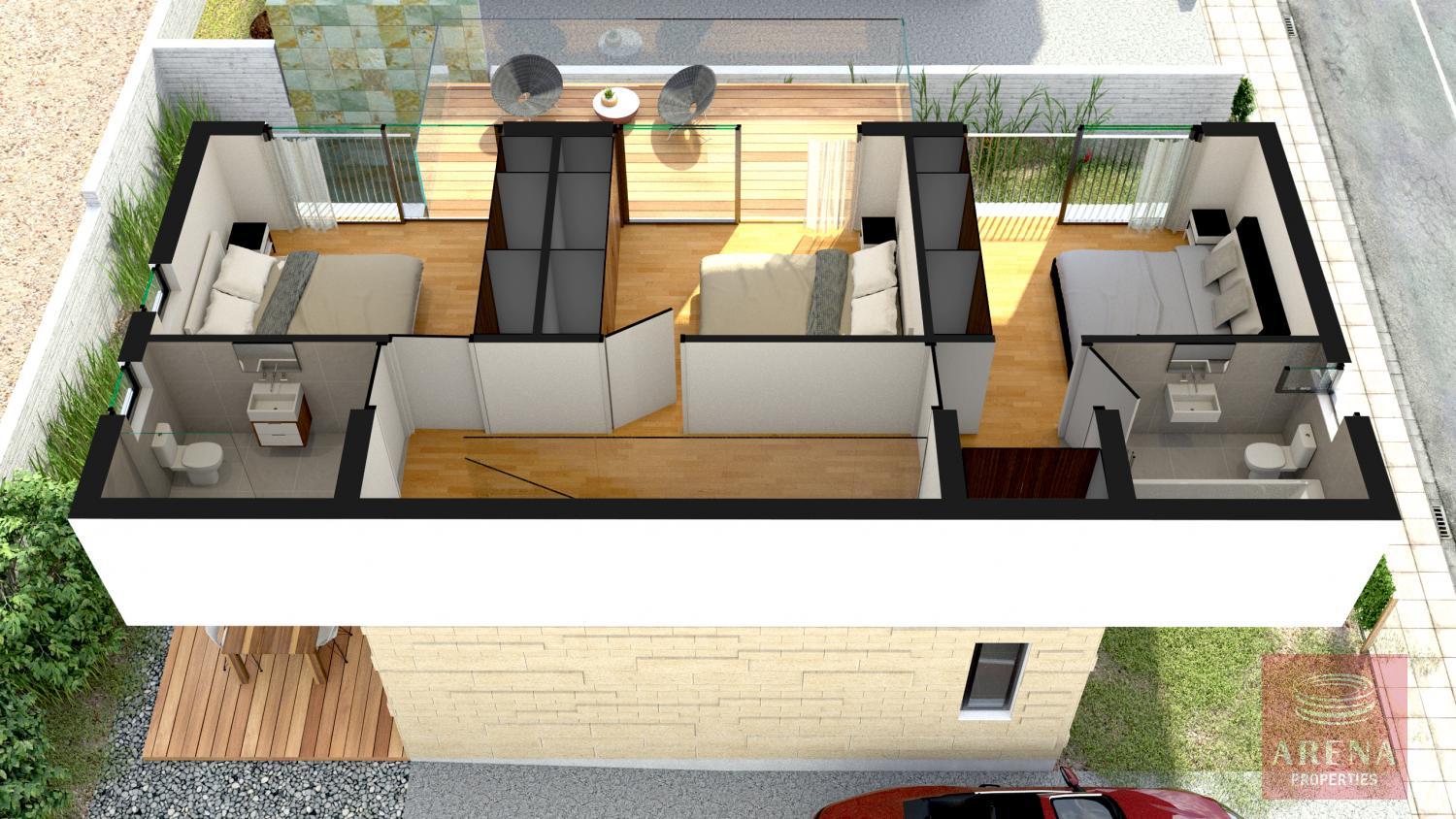 The villas will meet your highest expectations in respect of construction and high quality fittings are standard. At the early stage of construction you will be able to choose tiles, kitchen cabinets and other fittings to suit your own taste. A swimming pool is optional. The roof terraces offer another outdoor living space for your family to enjoy the panoramic views of the coastline and Cyprus. Villas are characterised by the modern functional architecture with attention to every small detail. Glass balustrades are fitted on verandas to enhance the dramatic views of the Mediterranean coastline and magnificent Cyprus sunsets. The use of the natural stone and wooden fascia gives feeling of closeness with the nature and adds an element of warmth. These elegant homes have all the hallmarks of state-of-the-art design, comfort and luxury, while retaining a feeling of family-friendliness.