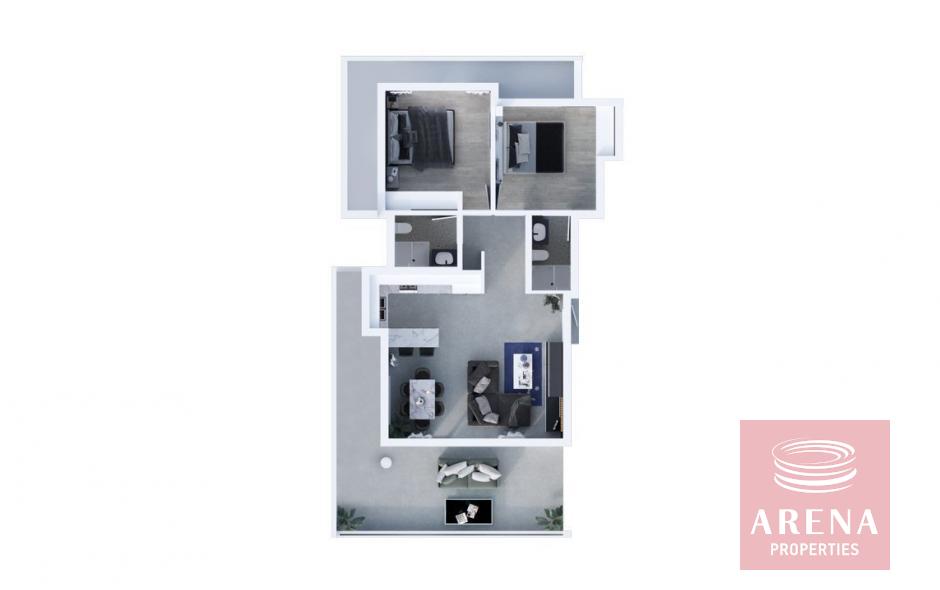 A block of 8 apartments, 2 on each floor, centrally located, next to local amenities and 3 minutes’ drive from the new Marina of Larnaca. The top apartments benefit of a roof garden with barbeque area and sea view.