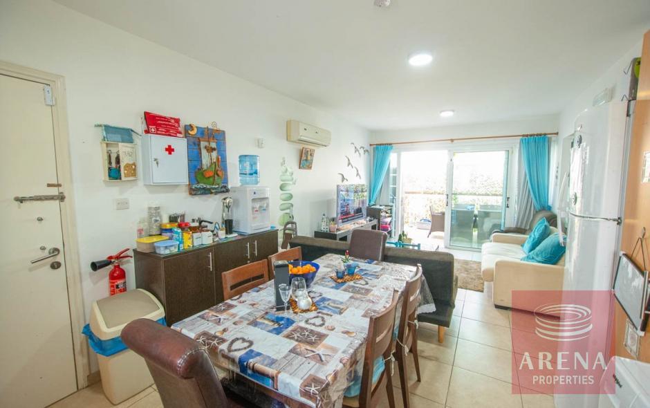 This modern and stylish apartment at well looking after complex in Kapparis has been thoughtfully designed with comfort and harmony in mind. The style of the development is contemporary so as to blend in with the Mediterranean style of the surrounding area and is a combination of both classic and modern Cypriot architecture. Restaurants, bars and supermarkets can be found within 600 meters from the development, whilst the nearby beach is 0.85 km stroll away.
