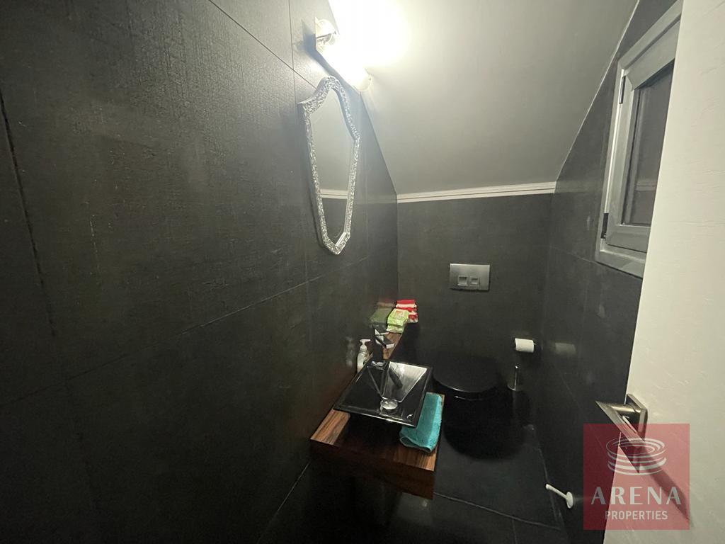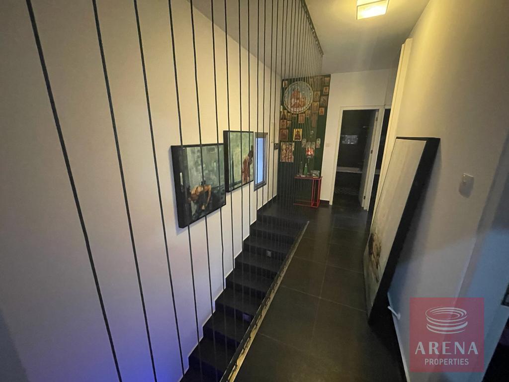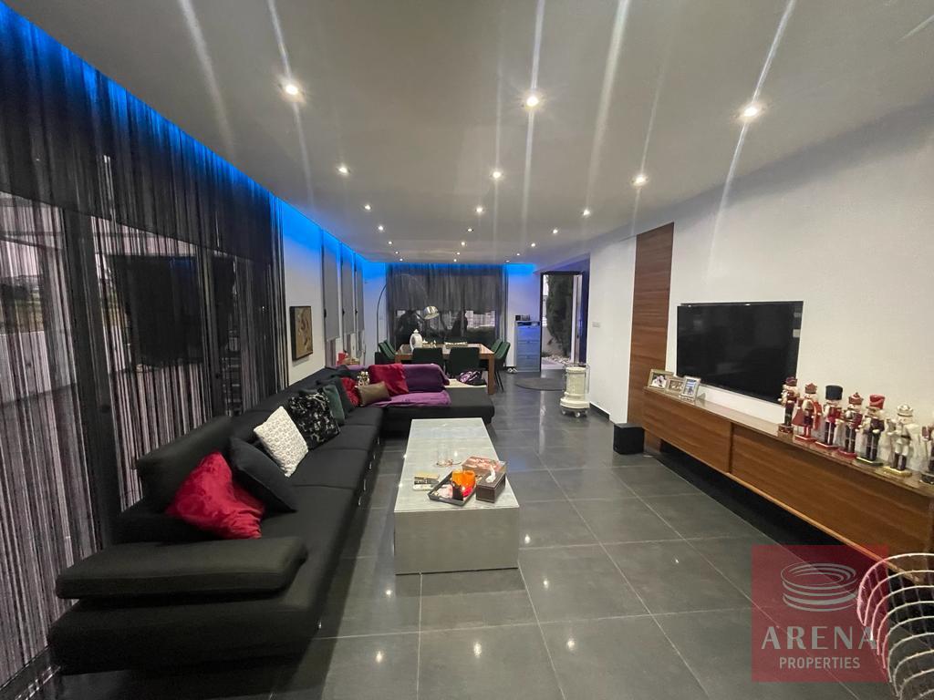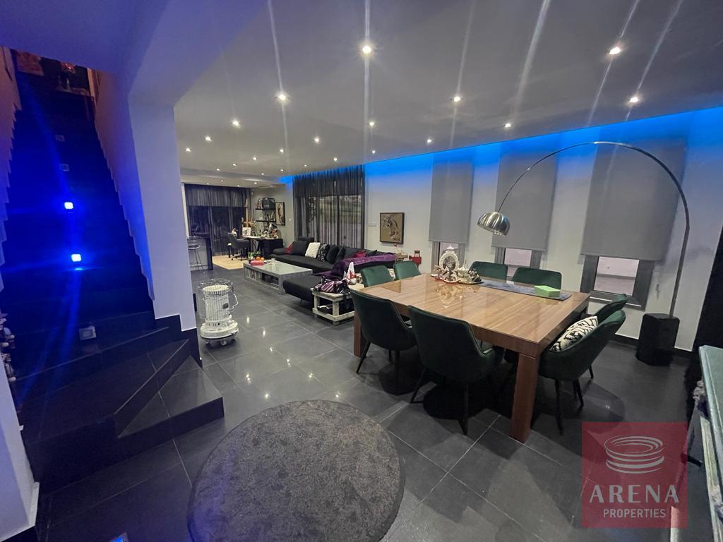 The accommodation briefly comprises of an open plan lounge, a stunning luxury modern kitchen with breakfast bar, and a guest WC on the ground floor, whilst a marble staircase boasting concealed mood lighting takes you upstairs to the 3 double bedrooms (master with en-suite) and the family bathroom. Clever use of storage offers a concealed laundry area upstairs, and the same ingenious use of decoration offers additional storage and shelving in the lounge. The villa sits on a large plot which boasts a low maintenance front garden, a large drive with covered parking and a spacious rear garden which does have space for a private pool if required. The villa has air condition throughout and provision for central heating. Oroklini village boasts traditional tavernas, bars, restaurants, shops and other facilities whilst the Palm Beach Tourist area with the beautiful beaches of the area is only a 5mins drive away.