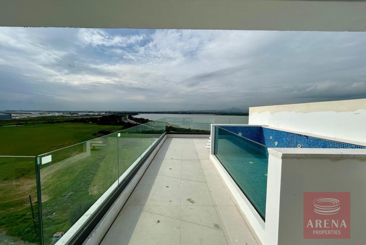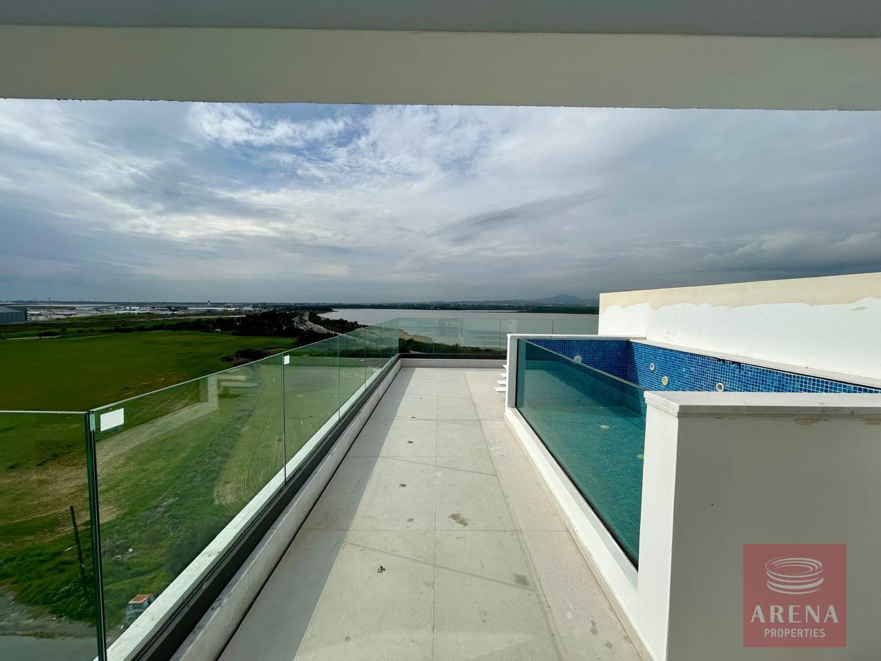 On the 6th and 7th floor 75 m2 internally 22 m2 covered veranda 70 m2 roof garden Private swimming pool 3.70 m2 storage room 12 m2 covered parking space 2 bedrooms 2 +1 bathrooms Solar panels for heating the water (on the roof) Electric heater for the water Integrated AC unit at the living room, open plan kitchen 2ACs units in the bedrooms Magnificent views to the Salt lake with flamingos – symbol of Larnaca! Views to the mountains, sea views from the veranda, bedrooms, roof garden! 400 meters to Makenzie beach, restaurants, bars, ice-cream shops!! Very special and unique property ready to move in!