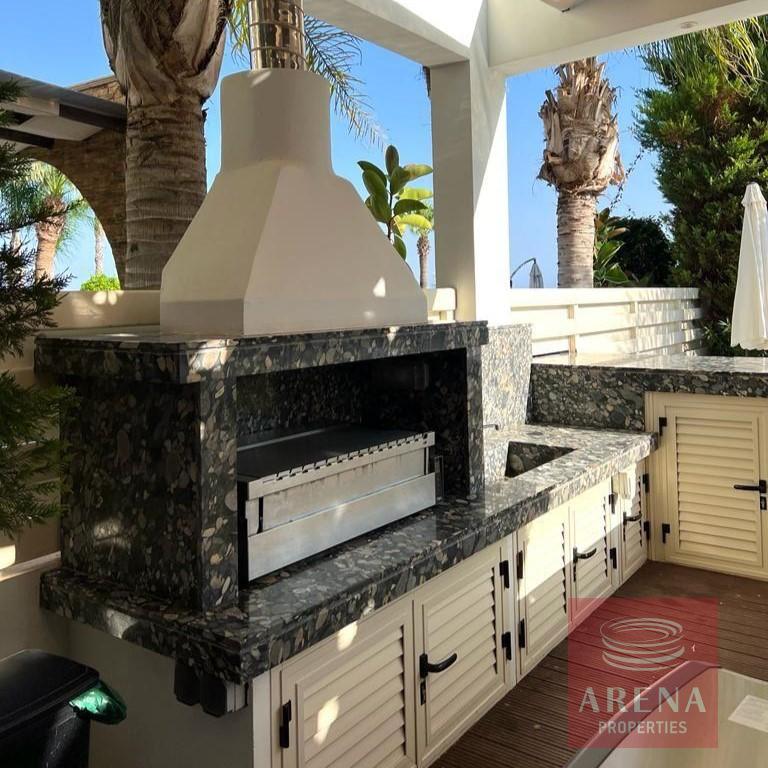 Outside area benefits from large overflow swimming pool along with a jacuzzi nestled in a meticulously landscaped garden, outside covered fitted kitchen with BBQ and seating areas. There is covered and uncovered parking . The green area extending directly to the sea enhances the property’s exclusivity, allowing residents to bask in the natural beauty that surrounds them.