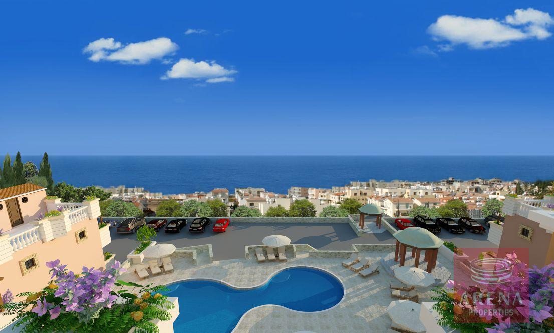 Luxury residential development located in the heart of Pafos town with excellent coastal views. Centrally located and within minutes access to a plethora of amenities and services including the International School of Paphos, the Kings Avenue Mall and the Golf Resort. Facilities include private gym, children’s paddling pool, swimming pool and communal landscaped gardens. Short drive to blue-flag beaches, resorts and the Pafos International Airport. If there’s one outstanding feature of this luxury development, it’s the breathtaking, views of Pafos and the enchanting sun as it dapples on the sparkling Mediterranean coast. Owning a property here also makes perfect sense from an investment point of view. The development has been designed by an elite team of acknowledged and respected architects, which is reflected in both the aesthetic and functional superiority of the project. Then of course there is the location, which in property terms is always vital. Located on a hilltop, on the outskirts of the town, is only five minutes from a surplus of amenities and services, a delightful variety of Pafos’ Blue Flag beaches, and fifteen minutes from both Pafos International Airport and the acclaimed Golf Resort. As for the development itself, includes luxury facilities such as a large, communal swimming pool, children’s paddling pool, and private gym with Jacuzzi and sauna and gender specific ablution conveniences. The spacious apartments and condominiums, ranging from 2 and 3 bedrooms, are designed over five blocks and are thermal insulated, keeping interiors cool in the summer and warmer in the winter months. The condominiums also boast magnificent roof gardens with kitchenettes and storage areas, providing the perfect ambiance for entertainment with panoramic town and sea views sweeping below. Whichever way one looks at it, investing in it makes perfect sense, from any point of view.
