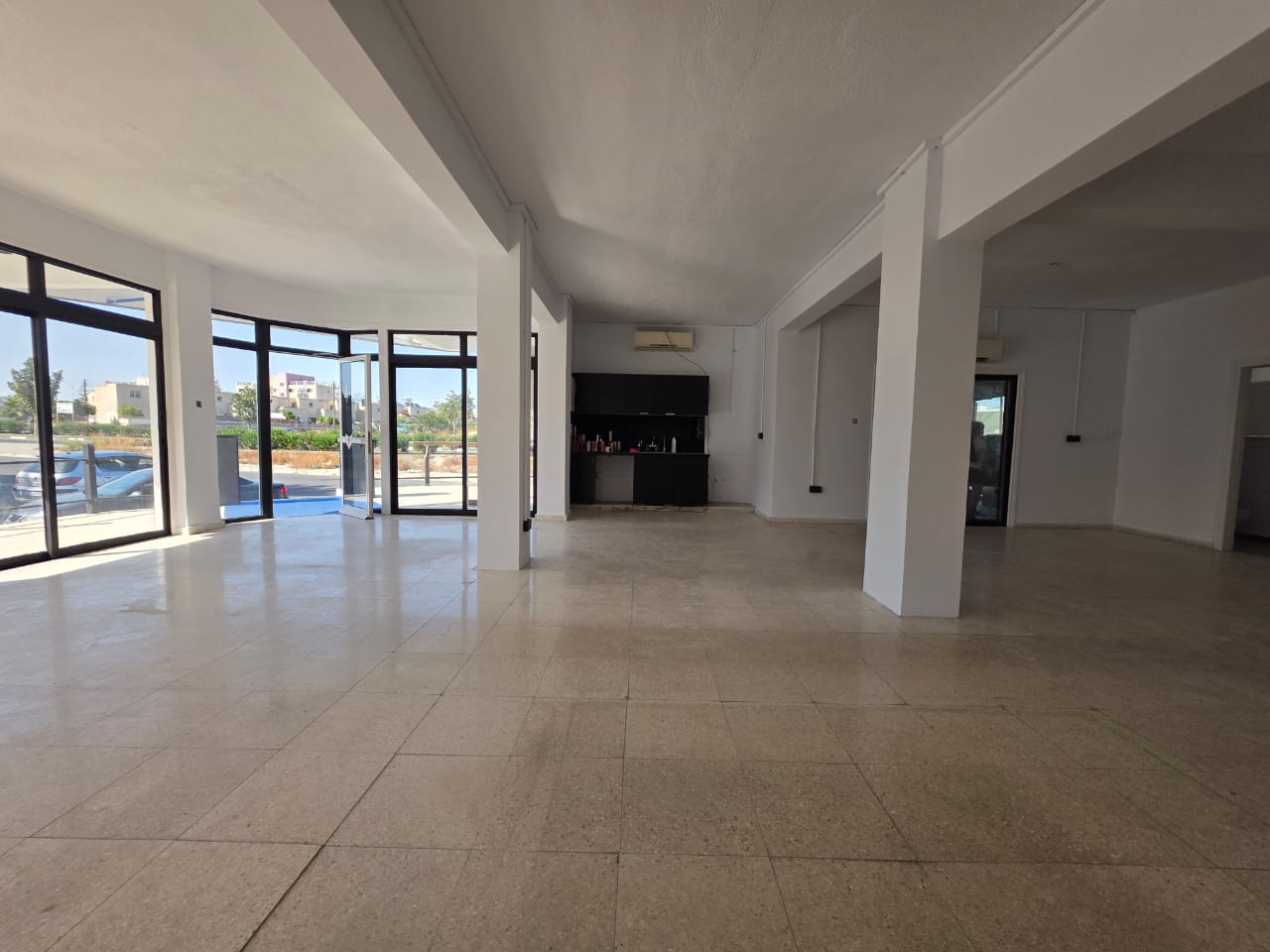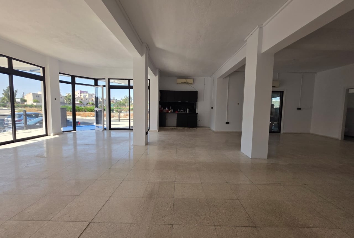 Discover an exceptional opportunity to establish your business in the thriving Aradippou area. This versatile commercial space is available for rent at €1500 per month. It offers a sprawling 140 square meters of internal space, ideal for many ventures. Perfectly suited for a retail shop, a dynamic showroom, or even a modern gaming lounge. The interior is bright, featuring crisp white-painted walls and resilient tiled flooring. This provides a clean, contemporary canvas, ready for your unique branding and fit-out. Expansive front windows and elegant glass doors flood the space with abundant natural light. This creates an inviting atmosphere and ensures excellent visibility for potential customers. The property includes two well-maintained, tiled restrooms, equipped with modern, clean fixtures. Towards the rear, a section offers a flexible area with warm wood-effect flooring. This space is pre-wired with numerous electrical outlets, perfect for private offices or storage. Additionally, the property boasts 50 square meters of external area and rooftop access. This external space presents exciting potential for an outdoor extension or unique element. Imagine a vibrant rooftop bar or a dedicated customer lounge – the possibilities are vast. Strategically located in a well-established part of Aradippou, ensuring good accessibility. Benefit from a strong local community and a steady flow of potential clientele. Its highly adaptable design and appealing features make it a top choice for growth. Ideal for businesses looking to expand or launch a new presence in a dynamic commercial hub. Don’t miss out on this fantastic opportunity to elevate your business. Contact Arena Properties today to schedule your viewing appointment.