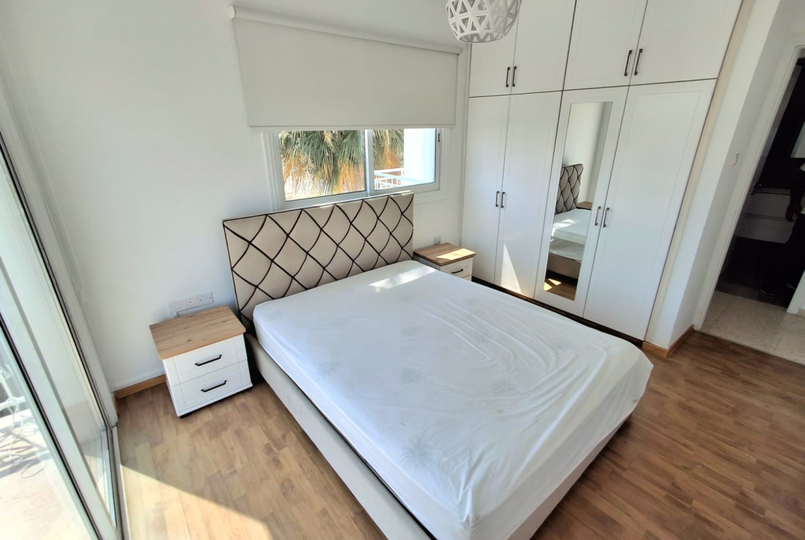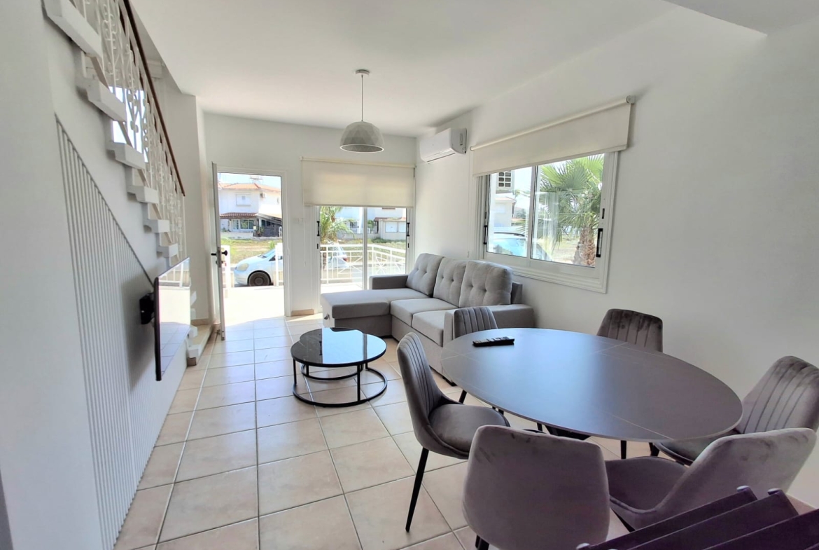 Corner house Big yard 2 bedroom 1 main bathroom 1 quest toilet 85 sqm internal 230sqm land Covered& uncovered parking area Fully furnished Brand new a/c in all rooms Brand new furniture and electrical appliances Fully renovated 200m distance from the sea Close to all amenities Solar panels Small pets allowed