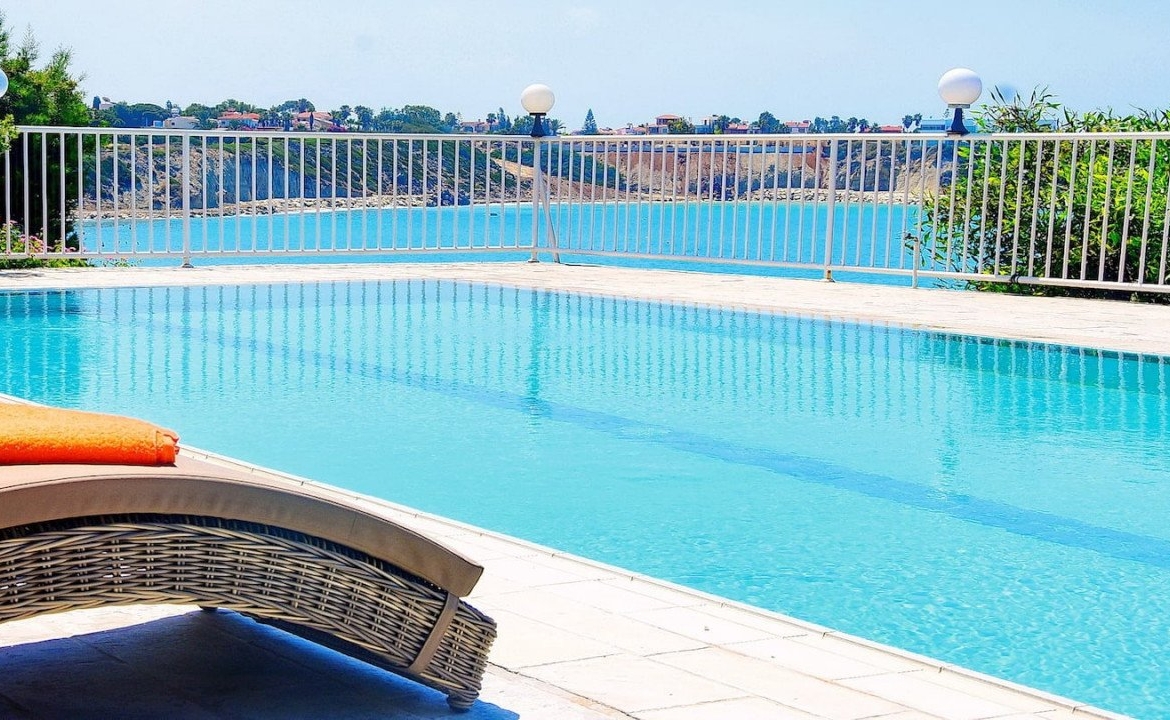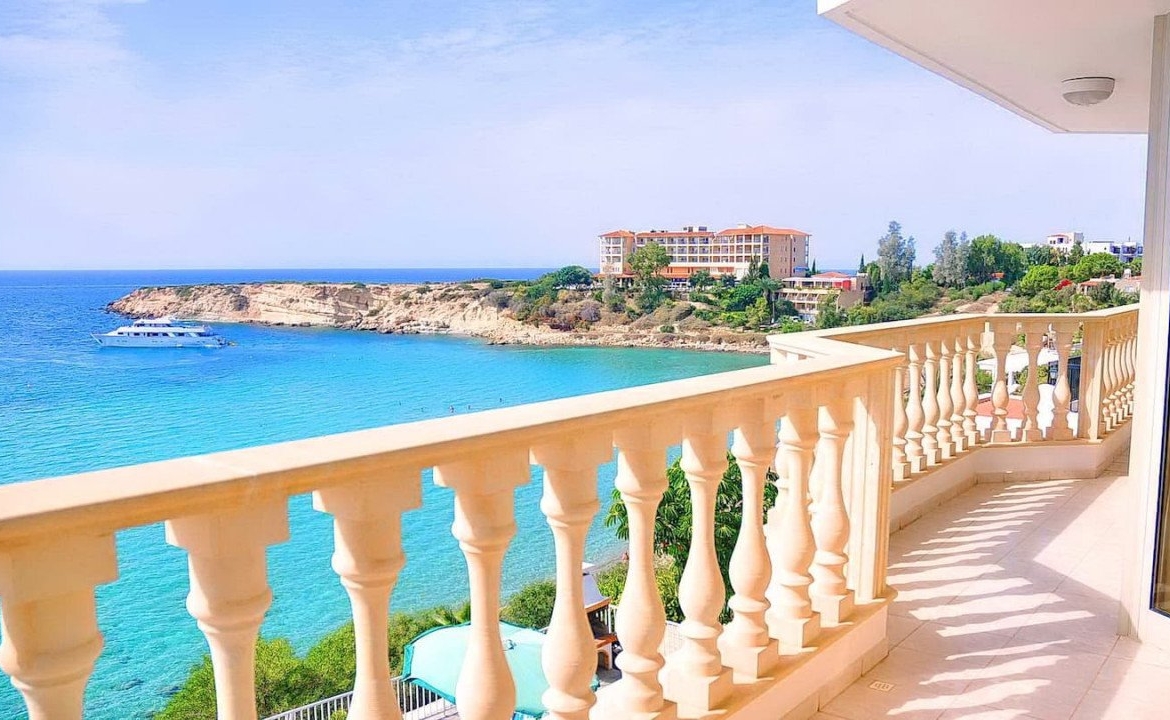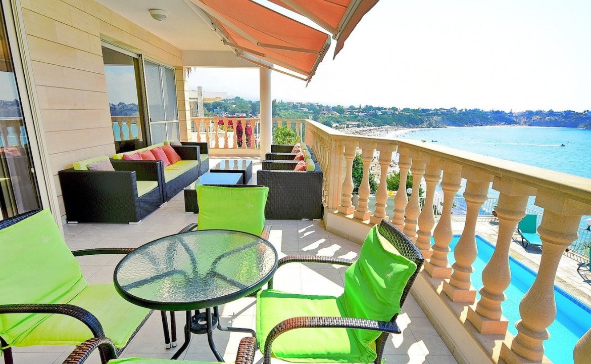 From the living area one can step out the large outdoor patio with breathtaking unobstructed views of the blue flag sandy beach of Coral bay and enjoy the tranquility and sound of the sea waves.