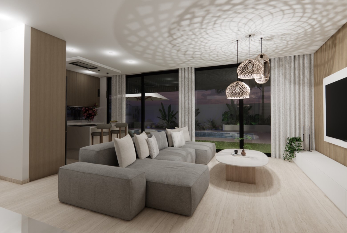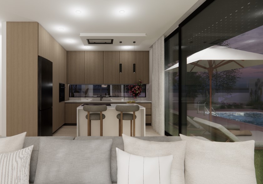 Located in Kapparis area of Paralimni town. Combines contemporary design, comfort, and the Mediterranean lifestyle. The residence features an open plan living and dining area, a modern kitchen, a master bedroom with ensuite bathroom, and two additional spacious bedrooms.