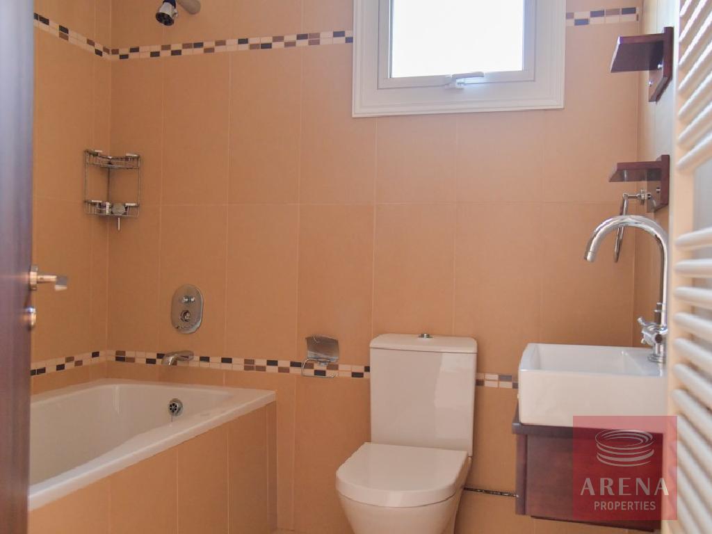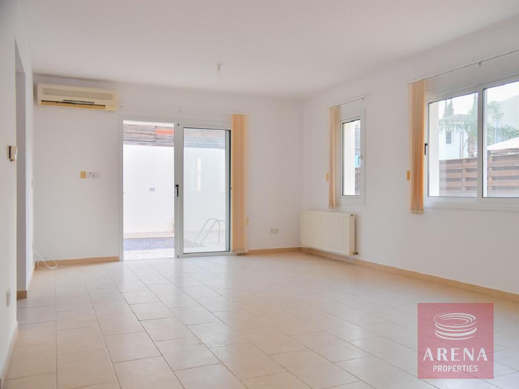 The villa was constructed around 2009 and it is part of a housing complex. Its level of construction and maintenance is good. It consists of a living room/dining room/kitchen as an open space and a guest toilet on the ground floor. The first floor consists of three bedrooms (the main en-suite) and a bathroom. Outside there is a yard and a swimming pool.
