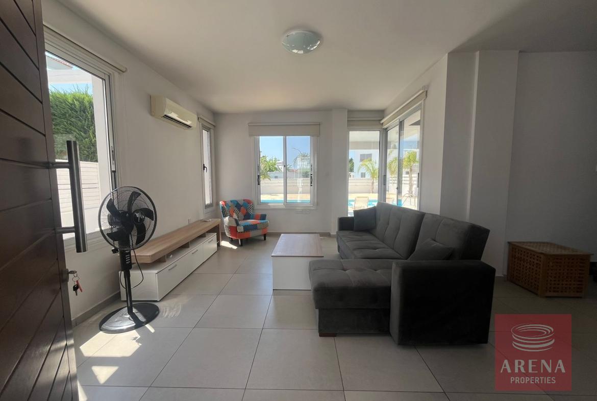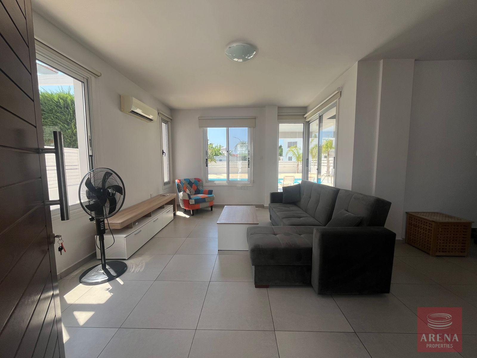 Beautiful three-bedroom house available for rent, located in Pervolia area, near to all amenities, schools, bank, bakery, supermarket and five minutes drive distance to Larnaca International Airport and the cosmopolitan McKenzie beach. The house consists of an open-plan living and dining area which is unified with the kitchen, a guest toilet, three bedrooms, a main family bathroom and an en suite shower.