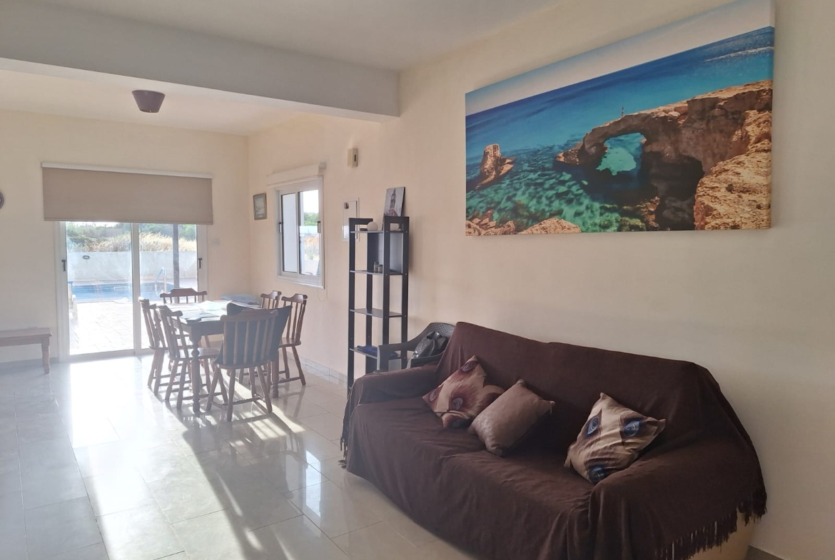 Imagine waking up to the Cypriot sun, stepping into your private garden, and taking a refreshing dip in your own swimming pool, all just moments away from the golden sands of Nissi Beach. This exceptional 3-bedroom villa in Ayia Napa makes that dream a reality.