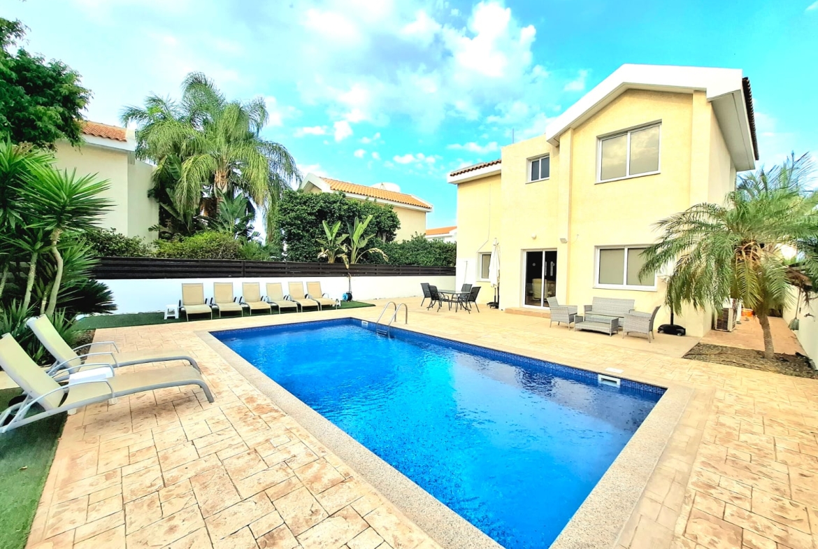 Embrace the ultimate Cypriot lifestyle in this delightful 3-bedroom villa, nestled in a peaceful part of Protaras. This property is a perfect blend of comfort and potential, set on a spacious 310m² plot with a private swimming pool as its centerpiece.